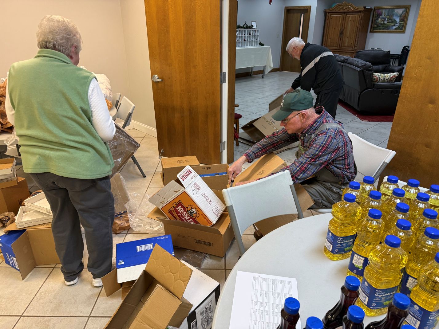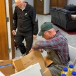 Men’s Ministry volunteers cleaning up storm damage at a member’s home.